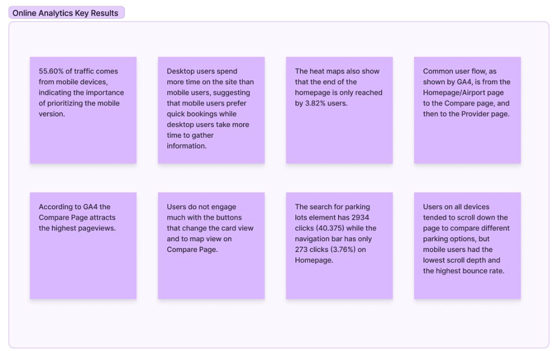 Additionally, a competitor analysis was carried out by reviewing direct competitors to evaluate their strengths and weaknesses. This helped identify industry patterns, uncover gaps in the market, and draw inspiration for features and best practices that could be adapted or improved upon in the redesign.