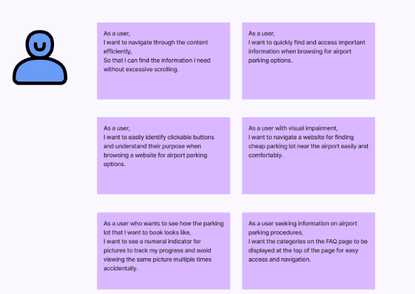 In addition to quantitative insights, the sessions revealed qualitative feedback, usability issues, and user recommendations. Based on these findings, I defined clear user requirements and translated them into user stories to capture user expectations and guide design decisions.